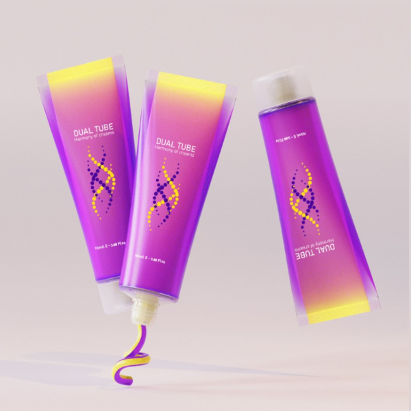 A 2-in 1 packaging solution that accommodates different formulas dispenses them at once, giving you a unique experience.